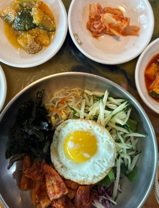 이 친구는 더덕을 잘 다루는데요. 주위를 둘러보면 남다른 풍채의 더덕들이 담금주 병에 담겨져 있어요. 역시 더덕에 진심인 친구예요. 타닥타닥 황홀한 돌솥의 asmr을 들으며 한 수저 들다 보면 다닥다닥 바닥까지 긁게 됩니다. 묵직한 돌솥의 두께가 온기를 끝까지 지켜줘요. 단순하지만 정갈한 밑반찬은 얼마든지 셀프 리필 가능해요.