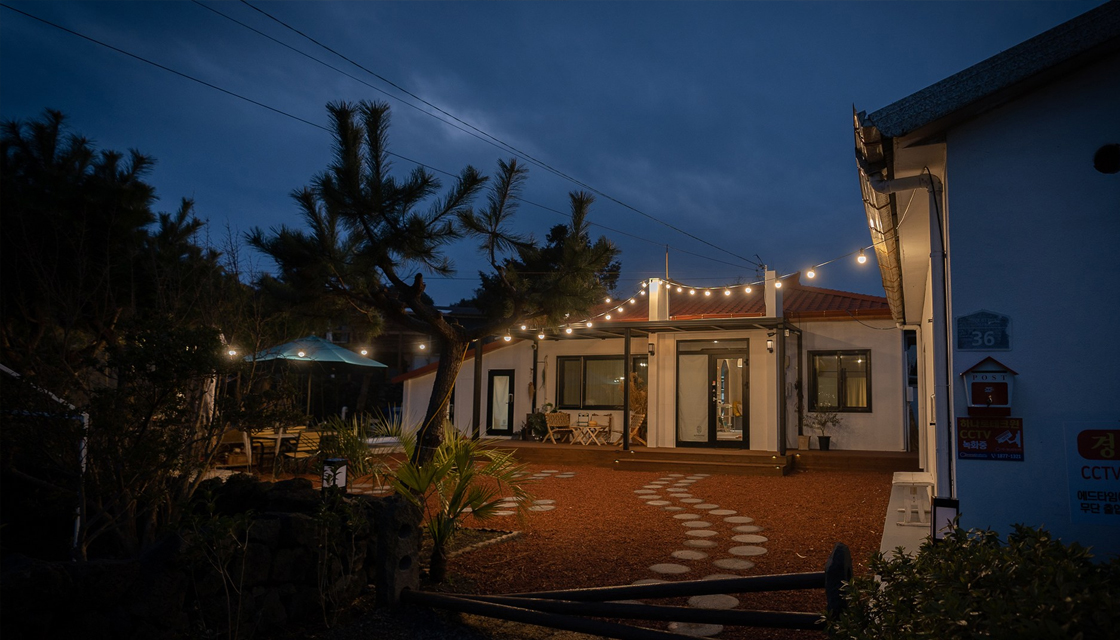 에드타임:가시는 서귀포 가시리 조용한 마을에 위치하여 사방이 귤밭에 둘러쌓여 있는 프라이빗한 공간을 느낄 수 있습니다. 마을에 위치한 곳이지만 사방이 귤밭에 둘러싸여 있어 프라이빗한 공간을 느낄 수 있습니다. 제주 화산 송이를 깔아놓은 앞마당에서는 바베큐와 불멍을 즐길 수 있고, 에드타임만의 조용하고 아늑한 앞마당의 전경을 느낄 수 있도록 설치된 어닝과 데크에서는 비오는 날에도 아늑하고 행복한 쉼이 가능합니다. 60년 동안 한자리를 지키고 있는 제주도에서도 보기 힘든 팔삭나무에는 그네가 매달려 있어요. 아이처럼 그네를 타며 동심으로 돌아갈 수 있는 ‘시간이 더해지는 에드타임:加時’의 진정한 즐거움을 경험해 보세요.