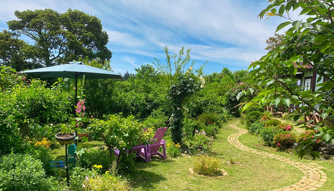 저는 제주도에서 가장 조용하고 한적한 마을인 가시리에서 유기견인 라나와 코난과 함께 로만토피아를 꾸려가고 있어요. 사시사철 꽃이 피는 아름다운 정원과 유기농으로 가꾸는 감귤밭 너머로 탁트인 전망을 볼 수 있답니다. 친환경 목조주택으로 지어진 로만토피아는 촉감 좋은 면 침구만을 사용하여 아침부터 저녁까지 지저귀는 새소리와 함께 나무향기가 쾌적한 실내환경을 경험하고 숙면을 취할 수 있답니다.
