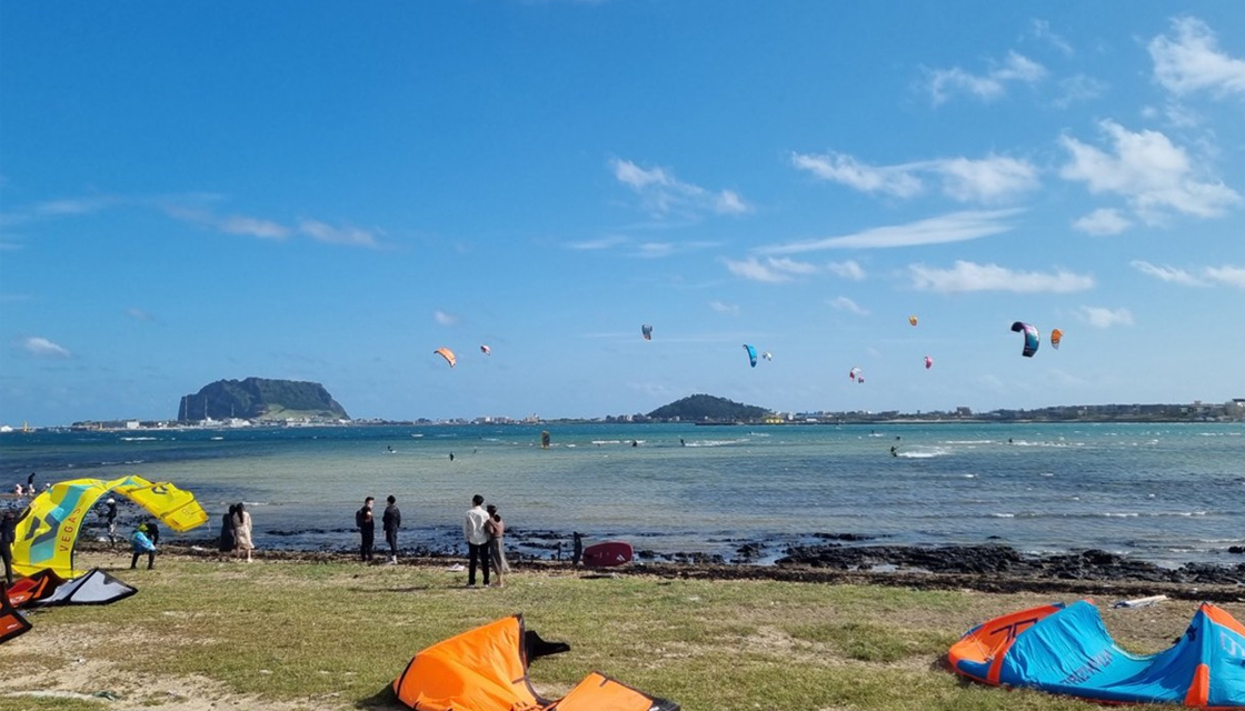 제주 해변을 물끄러미 보고 있으면 종종 마주치게 되는 장면이 있습니다. 바다 위 하늘에 연을 날리는 건지, 물살을 가르며 하늘로 부웅 날아오르기도 하는 서퍼들을 보는 것만으로도 짜릿한 ‘카이트 서핑’입니다. 제주 바당과 바람과 친해질 더없는 좋은 기회입니다. 하지만 한번 해보고 싶다는 생각에 꼬리를 무는 질문들이 있습니다. 저런 건 어디서 해볼 수 있을까? 장비는? 누가 가르쳐 주나? 정답은 바로 <스테이지하우스>입니다. 동카름 세화에서 해안 도로를 따라 약 십 분이면 닿는 종달리에 있는 이곳 스테이지하우스에서는 카이트 서핑 뿐만 아니라 스쿠버다이빙, 스노클링 등 바다에서 즐길 수 있는 다양한 액티비티를 제공하여 가족과 함께 제주다운 체험을 하기에 적합합니다.