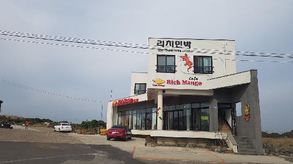 걸어서 1분거리에 우도 하고수동 해변이 위치해 있으며, 1층에 리치망고 카페를 같이 운영하고 있습니다.