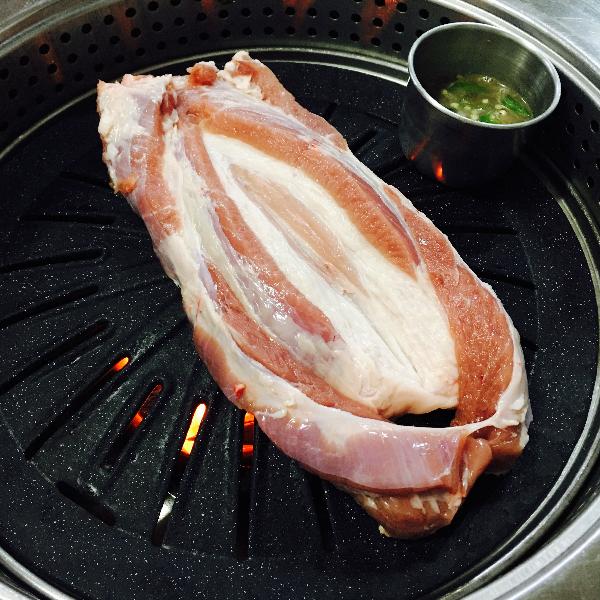 직접 농장에서 기른 흑돼지를 강원도에서 공수한 참숯에서 구워 먹는 곳