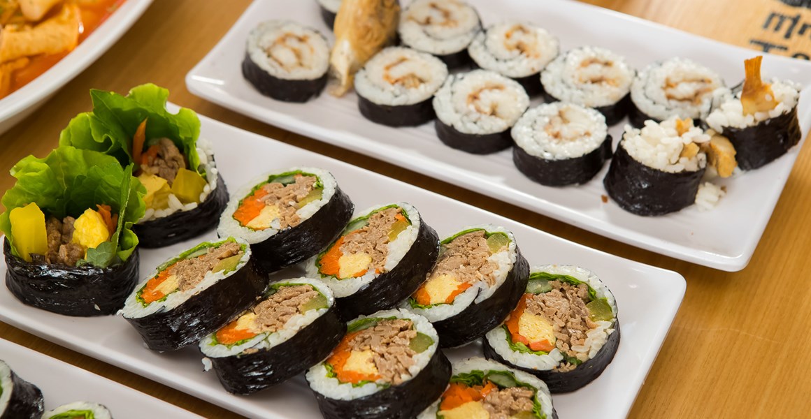 Gimbap adalah makanan Korea yang terkenal dan digemari hinggakan, seperti dim sum, asalnya bertujuan untuk dijadikan kudapan, tetapi kini telah menjadi masakan utama sesuatu hidangan. Gimbap terdiri daripada kertas umpai laut kering yang digulungkan dengan beras dan beberapa ramuan yang berbeza di dalamnya. Sepertimana dim sum mempunyai gulungan dan ban yang tersedia dengan pelbagai ramuan berbeza yang digulungkan di dalamnya, gimbap boleh dipesan dalam banyak bentuk. Untuk vegetarian, anda boleh memesan gulungan sayuran, atau untuk peminat BBQ Korea, anda boleh memesan bulgogi gimbap. Cara anda boleh memakan gimbap adalah tiada penghujung.