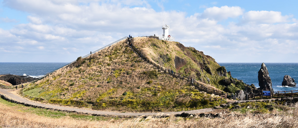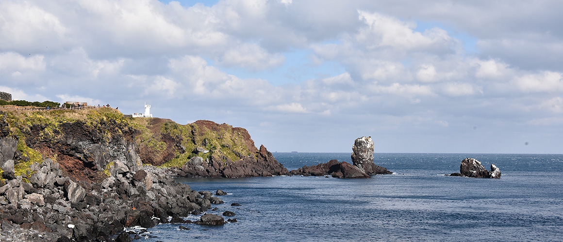 More recently, a number of iconic buildings by famous architects have been constructed in and around Seopjikoji, including the “Glass House” and “Genius Loci” of Ando Tadao. These remarkable structures stand in good company with the majestic UNESCO World Natural Heritage site of Seongsan Sunrise Peak in the distance.