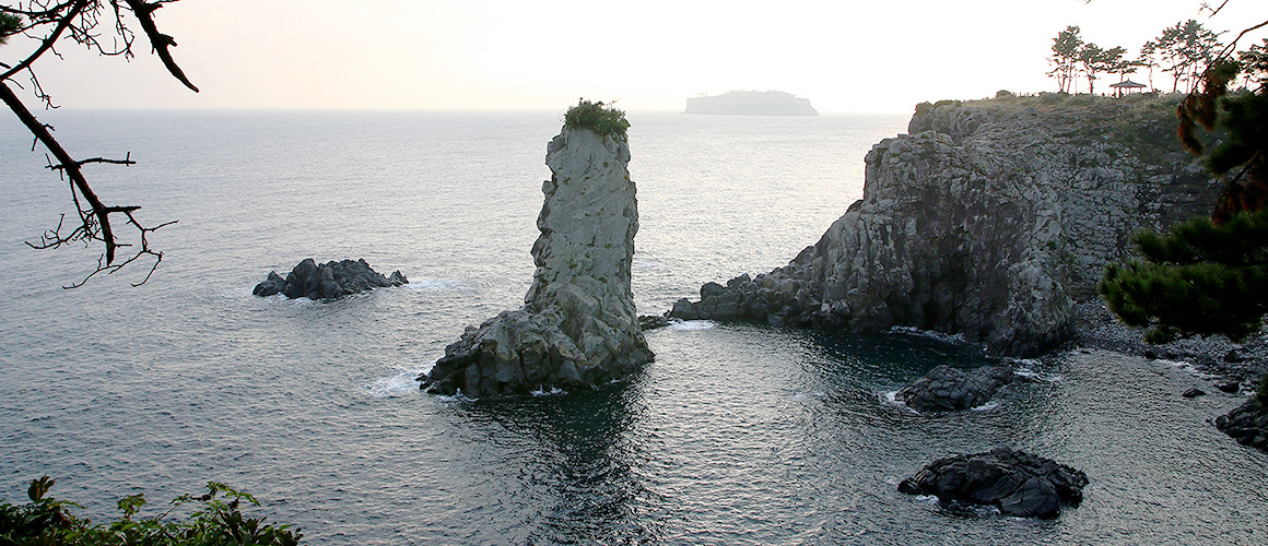 Fourth stop:OedolgaeAfter standing, waiting for centuries along Jeju’s south coast, the 20-meter-tall sea stack (it was carved away from the softer surrounding cliff face by wave erosion) some 2 kilometers from Seogwipo City is hard to miss — and has an unforgettable backstory as well. Oedolgae is said to be named for its lonely location. However, there is also a legend that says that the rock is actually a grandmother who transformed into a rock after waiting for her husband to return from fishing.