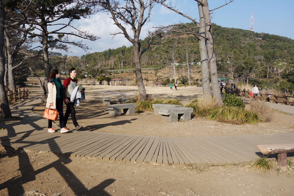 Second stop:Namwon KeuneongEongi means hill in the Jeju language. Namwon Keuneong gets its name from the fact that there is a huge rock that looks like it is opening its mouth to swallow the entire sea. The 200-meter coastal cliff is made of lava chunks that resemble a turtle’s shell. The grass here is soft, cozy, and lush, while the sound of waves crashing onto the massive rocks is sure to refresh the heart and mind of any visitor. Motorboats can be seen racing on the vast ocean and it is a popular fishing spot, a relaxing resting place, and a date spot. Jeju Olle walking trail No. 5 is along here as well.Keuneong Coastal Promenade정보 자세히 보기 >